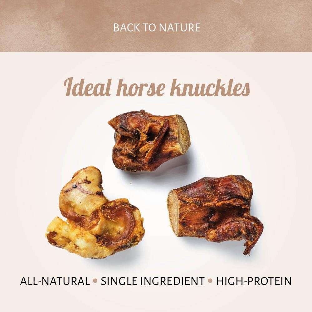 El nudillo de caballo está secado lentamente para conservar los sabores naturales. Estos gustosos aperitivos para perros son una forma natural de satisfacer los instintos masticadores y ayudan a reducir el comportamiento destructivo. Un bocado ideal para entretener a tu fuerte y feliz masticador.