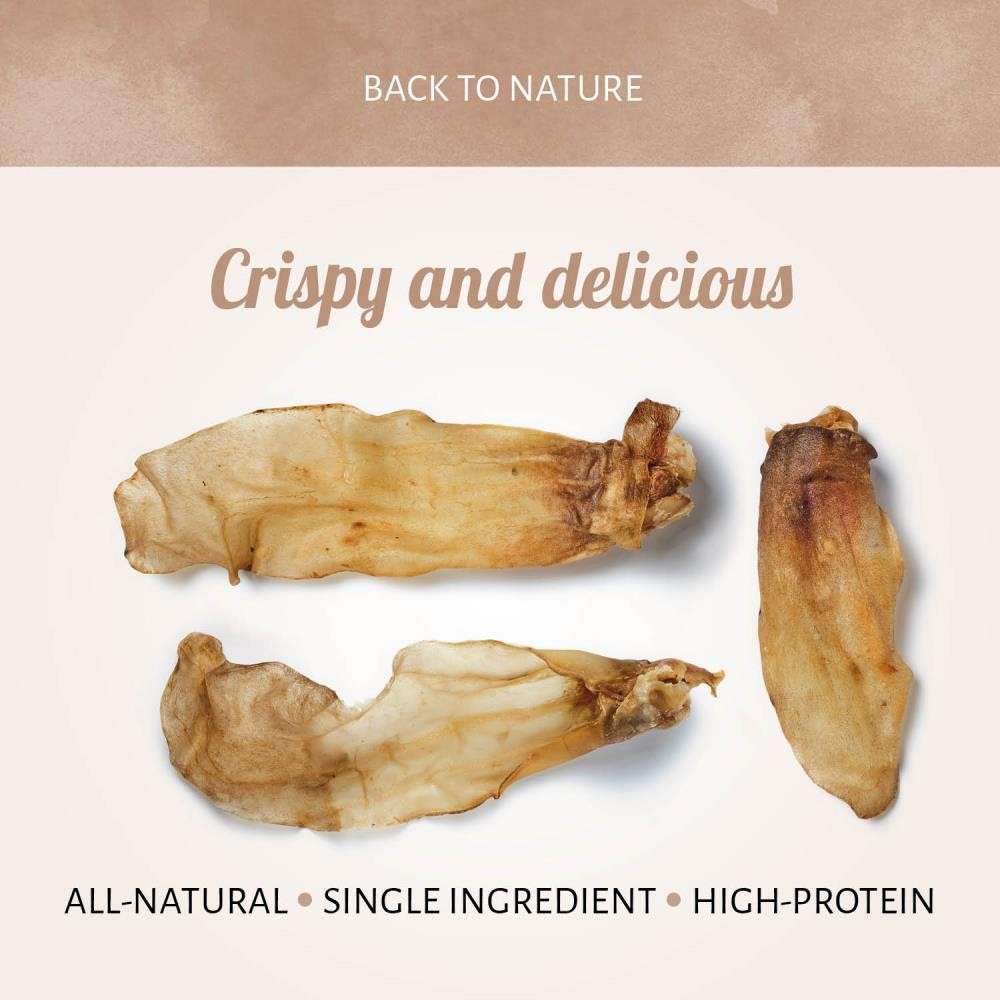 Las Orejas de Cabra curadas son bajas en grasa y representan un bocado hipoalergénico para los perros. Se consideran una buena alternativa a las orejas de cerdo y las orejas de vacuno. Los bocados naturales proporcionan una fuente natural de condroitina, estupenda para aliviar los dolores de articulaciones.