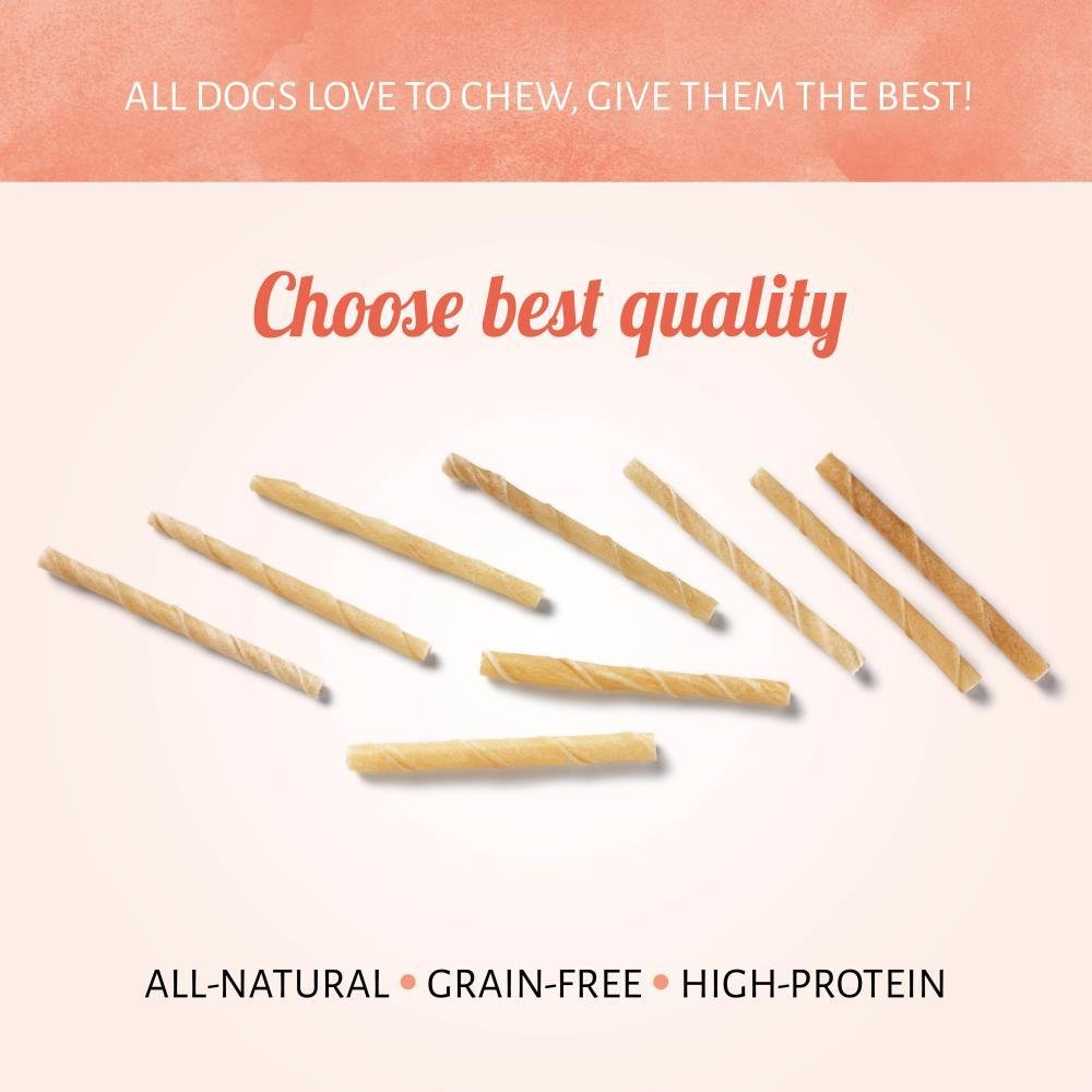 A tu perro le encantarán nuestros deliciosos masticables Palitos Torneados. Son deliciosos y ricos en proteínas. Mientras tu perro mastica los palitos, también se limpia los dientes. Tu mascota no podrá resistirse a la diversión de masticar.