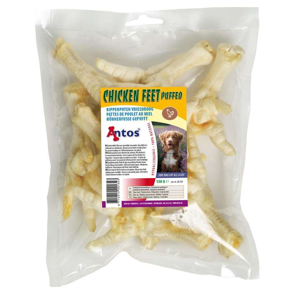Si buscas una alternativa natural a los suplementos para articulaciones, fíjate en nuestras patas de pollo infladas. Estos bocados son muy digeribles y tienen una textura crujiente que los hace irresistibles para tu perro ayudándole a mantener los dientes limpios mientras muerde.