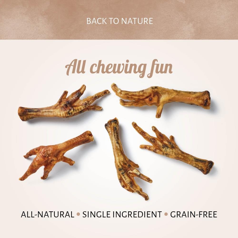 Nuestras patas de pollo son un aperitivo crujiente y completamente natural, y dan cantidad de sana diversión y placer masticando tanto a perros grandes como pequeños. Porque tu mejor amigo se merece lo mejor, prémialo con una delicia que le satisfaga y alimente en cada bocado.
