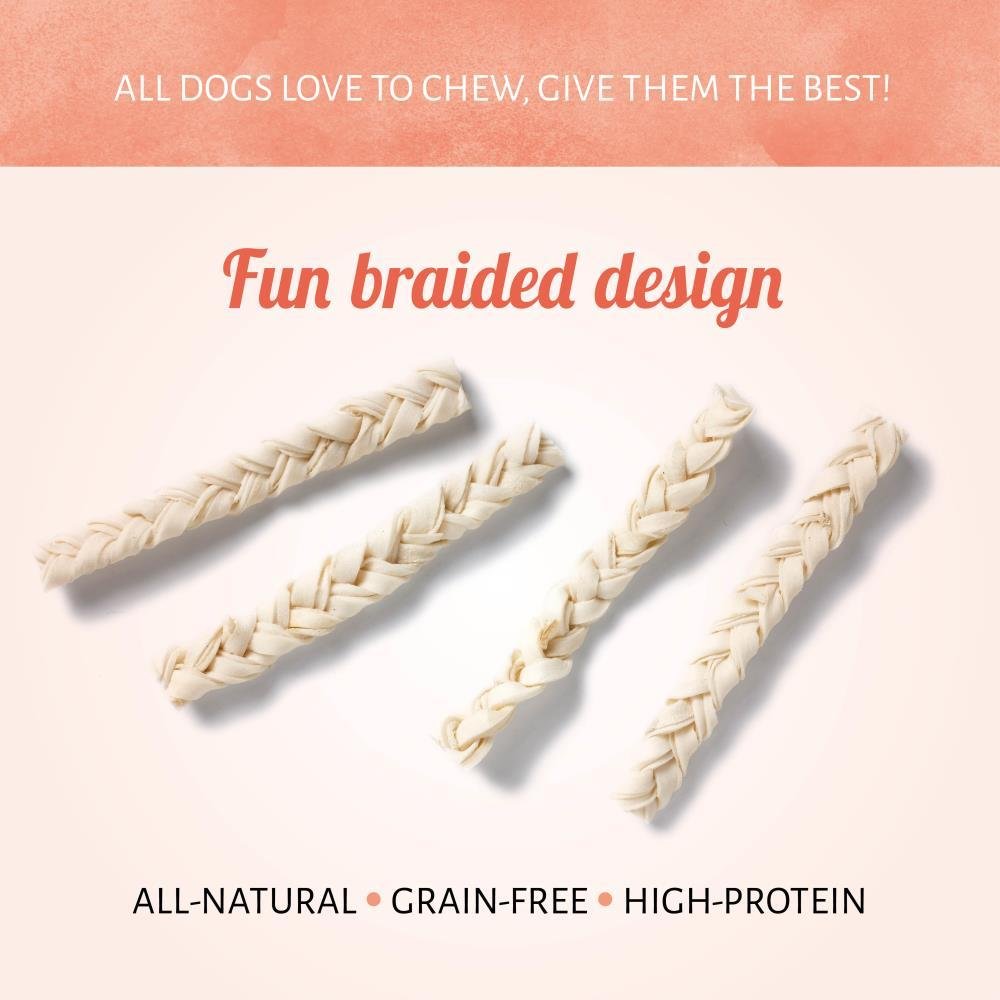 ¡Añade más diversión al clásico masticable de cuero crudo! A tu perro le encantará Piel Trenzada, cuyo diseño la convierte en una golosina fantástica para cualquier momento del día. Los masticables con alto contenido de proteínas le garantizan a tu mascota una experiencia de primer nivel.