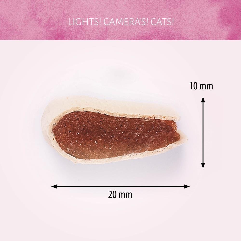 Alimente a su gato con premios. Premie de manera responsable: elija las golosinas según las recomendaciones de acuerdo con el tamaño de su gato. Para la seguridad de su gato, se recomienda observar a su mascota cuando le dé los premios. Vigile que tenga agua fresca en todo momento. Almacene en un lugar fresco, limpio y seco. Este producto es un premio y no se puede usar para sustituir una comida.