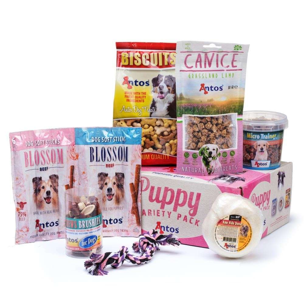 ¡Bienvenido, cachorrito! ¡Qué bien que hayas llegado! Elegir bocados y golosinas para el nuevo miembro de la familia es algo muy importante. Puppy Variety Pack está repleto de amor e incluye una variedad de delicias para que tu cachorro comience su vida de la mejor manera. Dale una sorpresa a tu cachorro con esta caja. ¡O también puedes regalárselo al papá o a la mamá del cachorrito!
