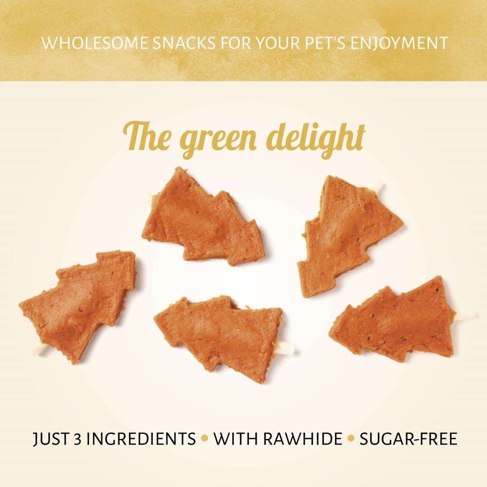 Ninguna Navidad estaría completa sin un árbol. Celebra toda la alegría y la magia de la temporada navideña con estos deliciosos bocadillos de pollo totalmente naturales: O Christmas Tree: green delight. Dale a tu perro las golosinas más dulces y hazle partícipe de la alegría de las fiestas.