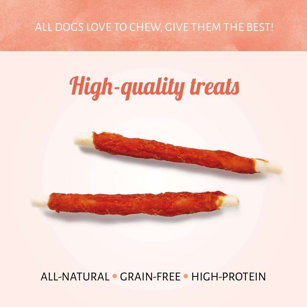 Haz de cada día un día de suerte con Raw Hide White + Chicken Roll. Estas delicias naturales tienen cuero crudo y pollo en una misma golosina. Cada rollito aporta un gran sabor y muchas proteínas, haciendo que sean muy satisfactorias para tu chucho.