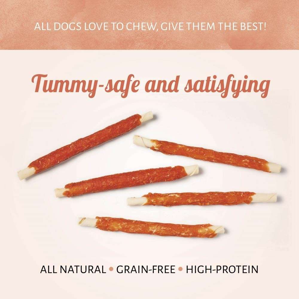 Satisface la necesidad natural de masticar de tu mascota con nuestros masticables para perros Raw Hide White + Chicken Roll de larga duración. Estos sabrosos masticables de cuero crudo vienen envueltos con auténtico pollo para darle un sabor único que a tu mascota le encantará. Mejor todavía: el palito de cuero crudo favorece la higiene bucal de tu perro mientras mastica.