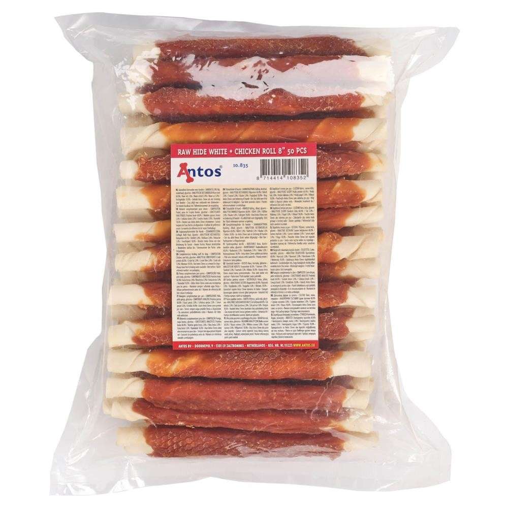 Raw Hide White + Chicken Roll 8" 50 piezas