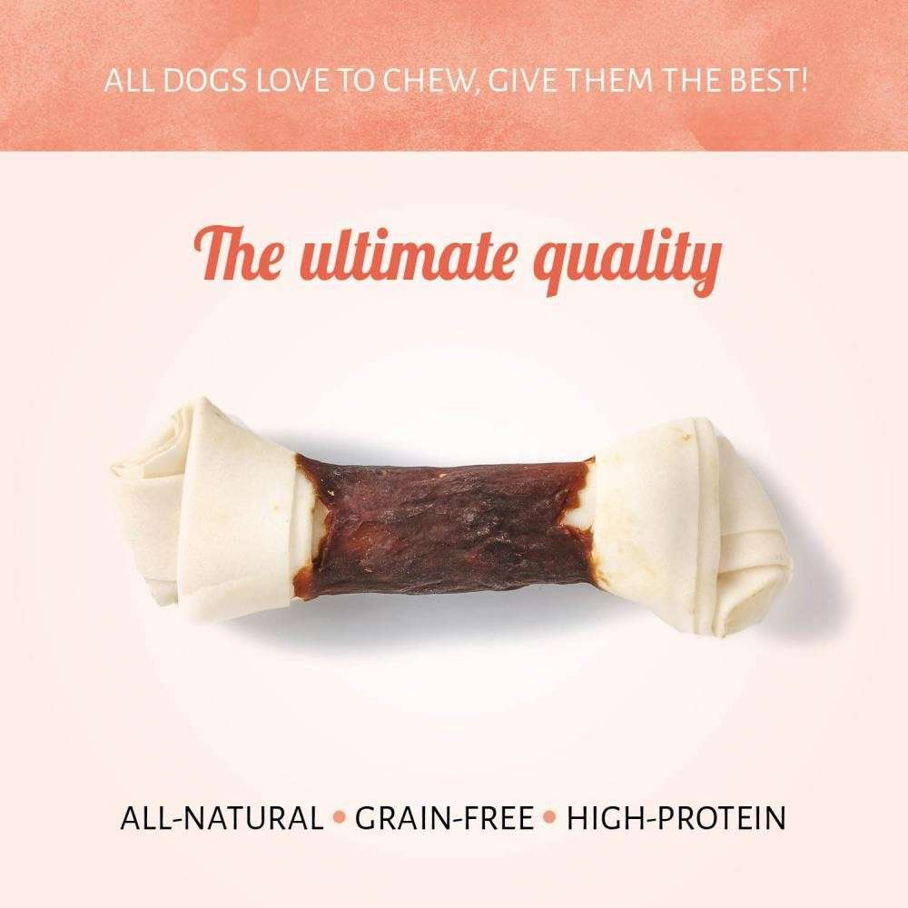 Ayuda a tu amigo para que mejore su rutina de ejercicios con Raw Hide White + Duck Knotted Bone. La carne de pato está asada lentamente para asegurar una calidad y un sabor definitivos. Simplemente algo bueno y delicioso, que nunca cansará a tu perro.