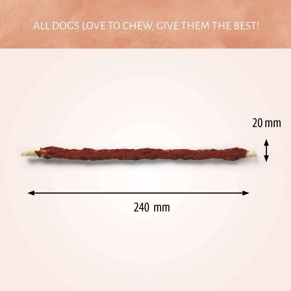 Raw Hide White + Duck Roll están hechos 100 % de pato natural envuelto en un palo de cuero crudo. Tu perro disfrutará masticando estas sabrosas delicias y su textura correosa ayudará a mantener limpios los dientes de tu perro.