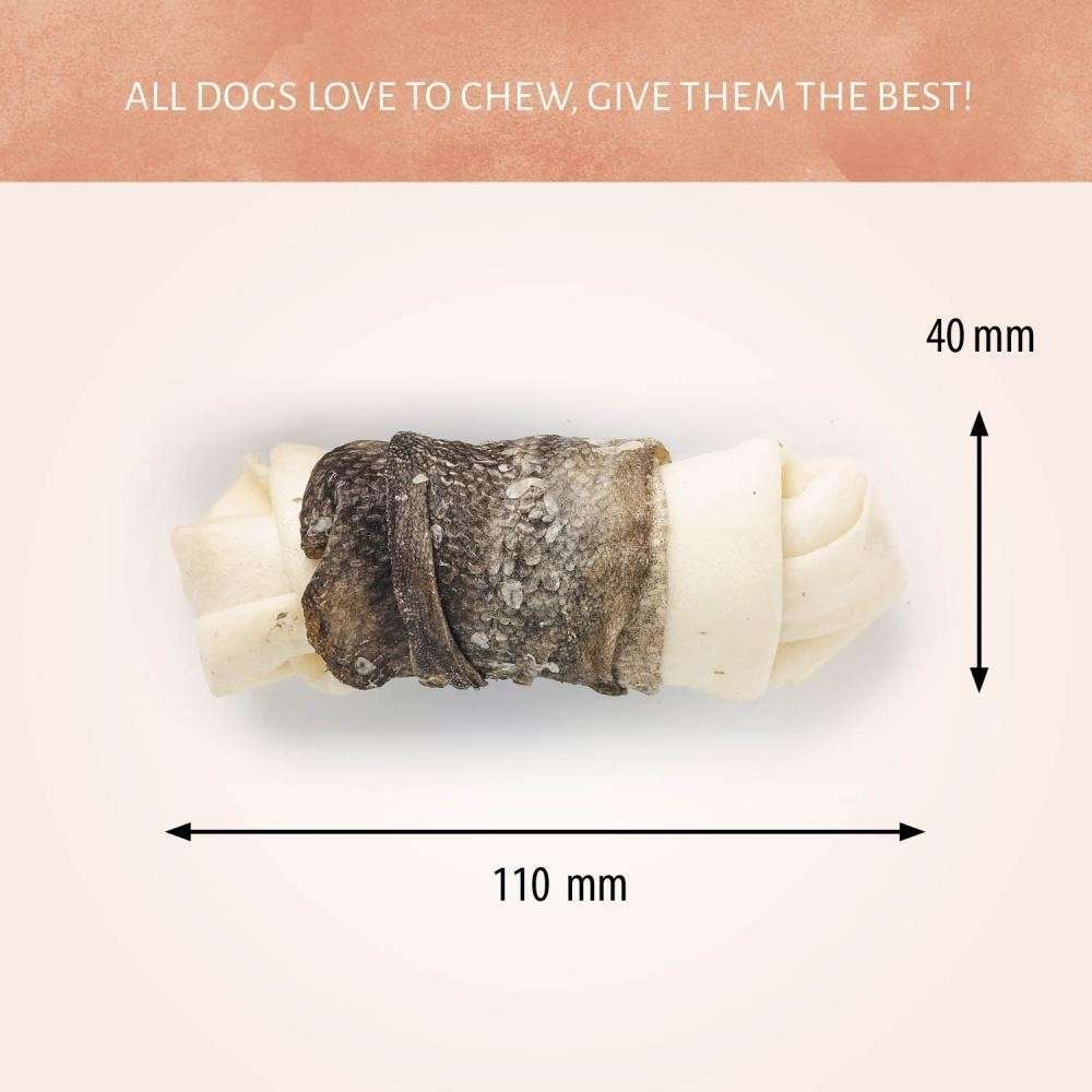Raw Hide White + Fish Knotted Bone 4/5" 2 piezas