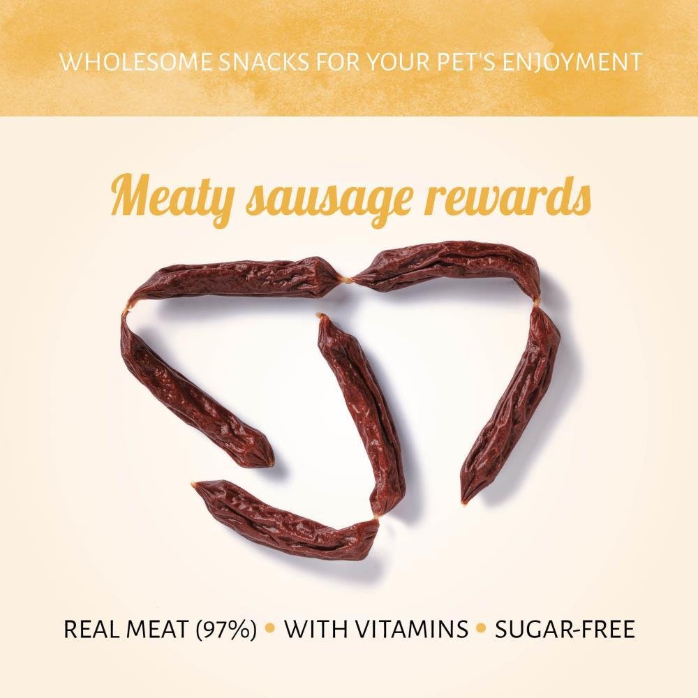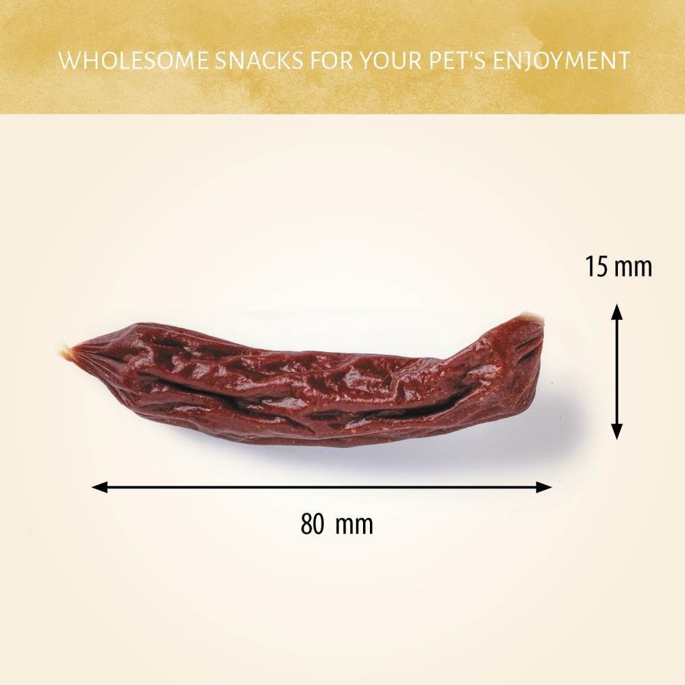 Salchichas Buey con ternera real principalmente, le ofrece a tu perro la nutrición que desea. Estas delicias se han cocinado lentamente, para conseguir un sabor a carne real y están completamente libres de cereales, para que hasta los perros sensibles los puedan disfrutar.