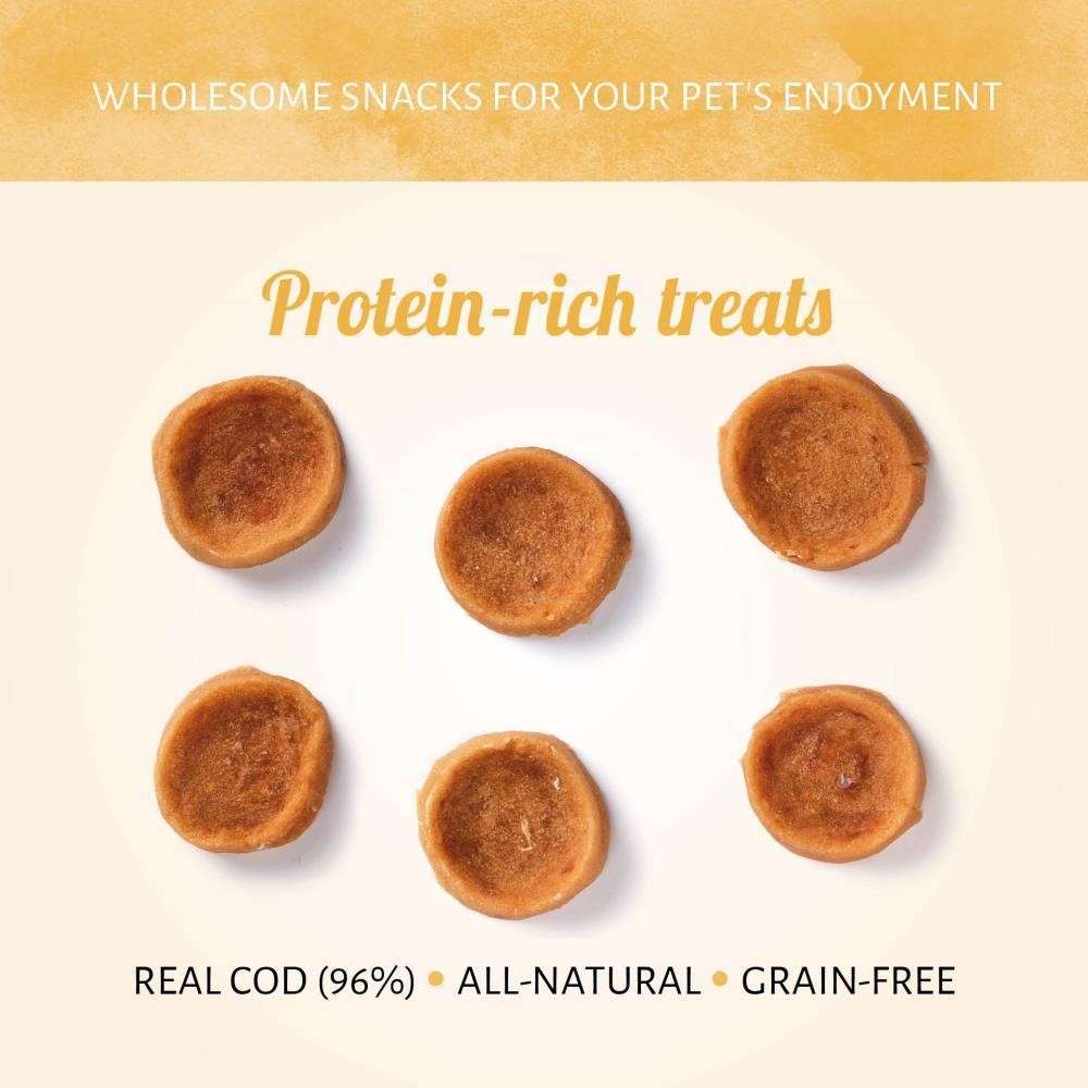 A tu can se le caerá la baba de placer por nuestro WILD Bacalao. Cada sabrosa delicia aporta un premio con alto contenido en proteínas. Hecho de pescado real como ingrediente principal, puedes darle este aperitivo junto a su comida favorita, o como sabroso aperitivo.