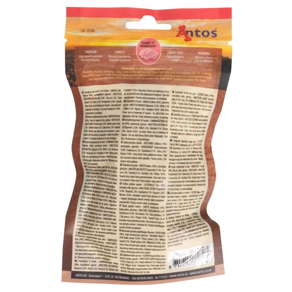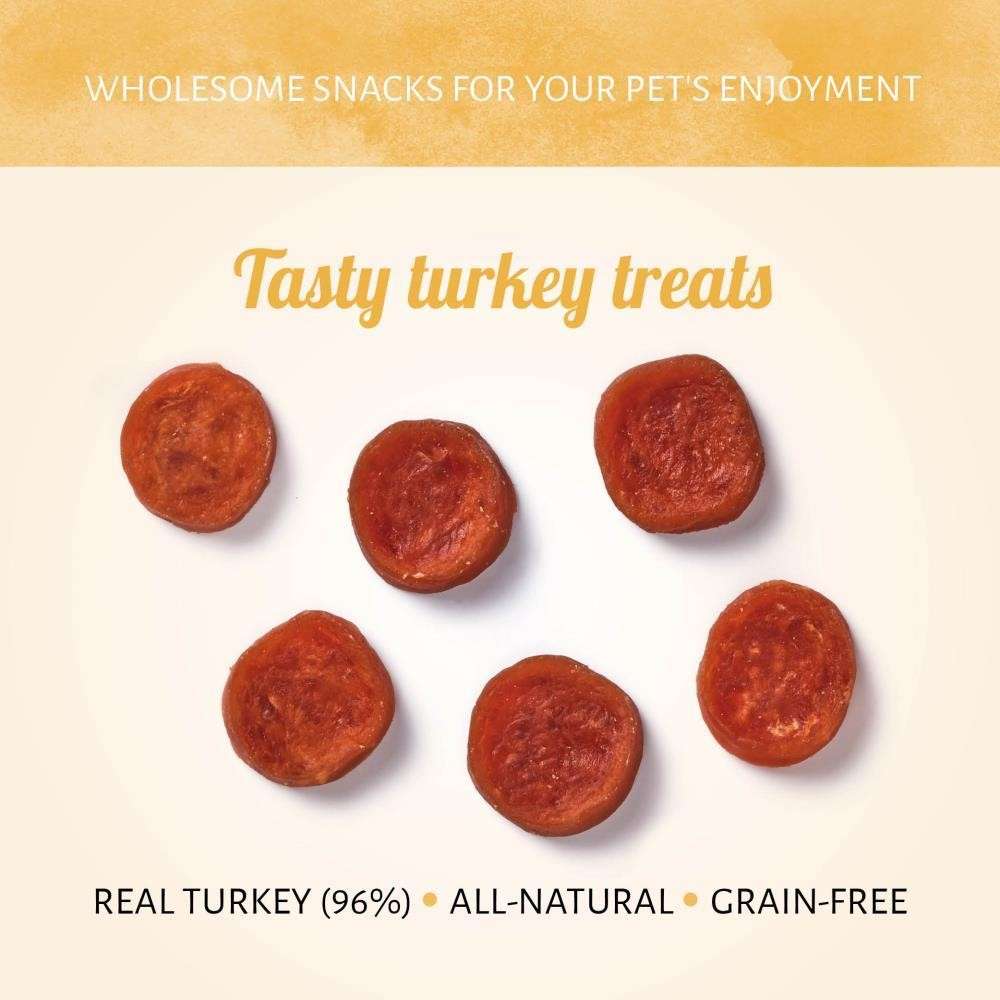 ¿Te vas a ir de excursión con tu explorador canino? Prepárate para escuchar muchos ladridos de alegría cuando saques estas delicias de pavo sin cereales para perros WILD. Las sabrosas delicias están hechas de pavo real como ingrediente principal en cada pieza.