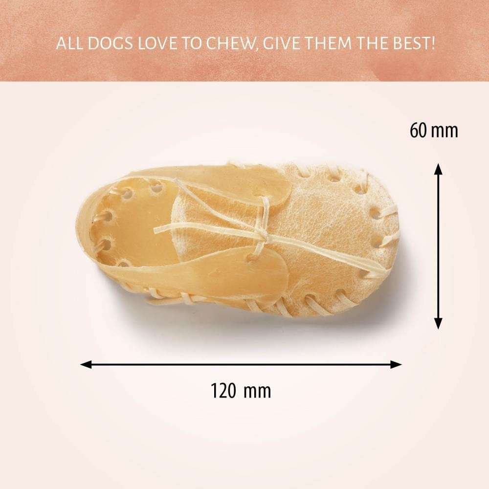 A tu mascota le encantará jugar con nuestros masticables Zapato. Cada pieza está hecha de cuero crudo totalmente natural y tiene cordones reales que a tu perro le encantará masticar. También puedes volverte muy creativo y rellenarlos con carne.
